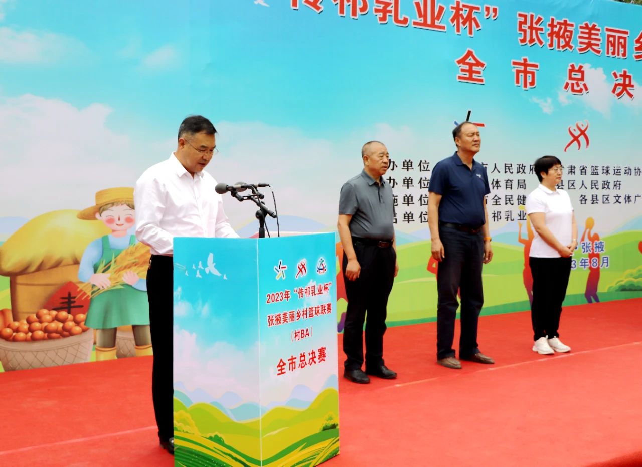8月25日晚,2023年“传祁乳业杯”甘肃省美丽乡村篮球邀请赛暨张掖乡村篮球联赛(村BA)全市总决赛闭幕式在甘州区润泉湖体育公园举行。市委副书记柴向前,市委常委、副市长徐岩,市政协副主席冯军出席闭幕式并为各代表队颁奖。甘肃前进现代农业发展集团董事长马志祥致辞并为获奖代表队颁奖。