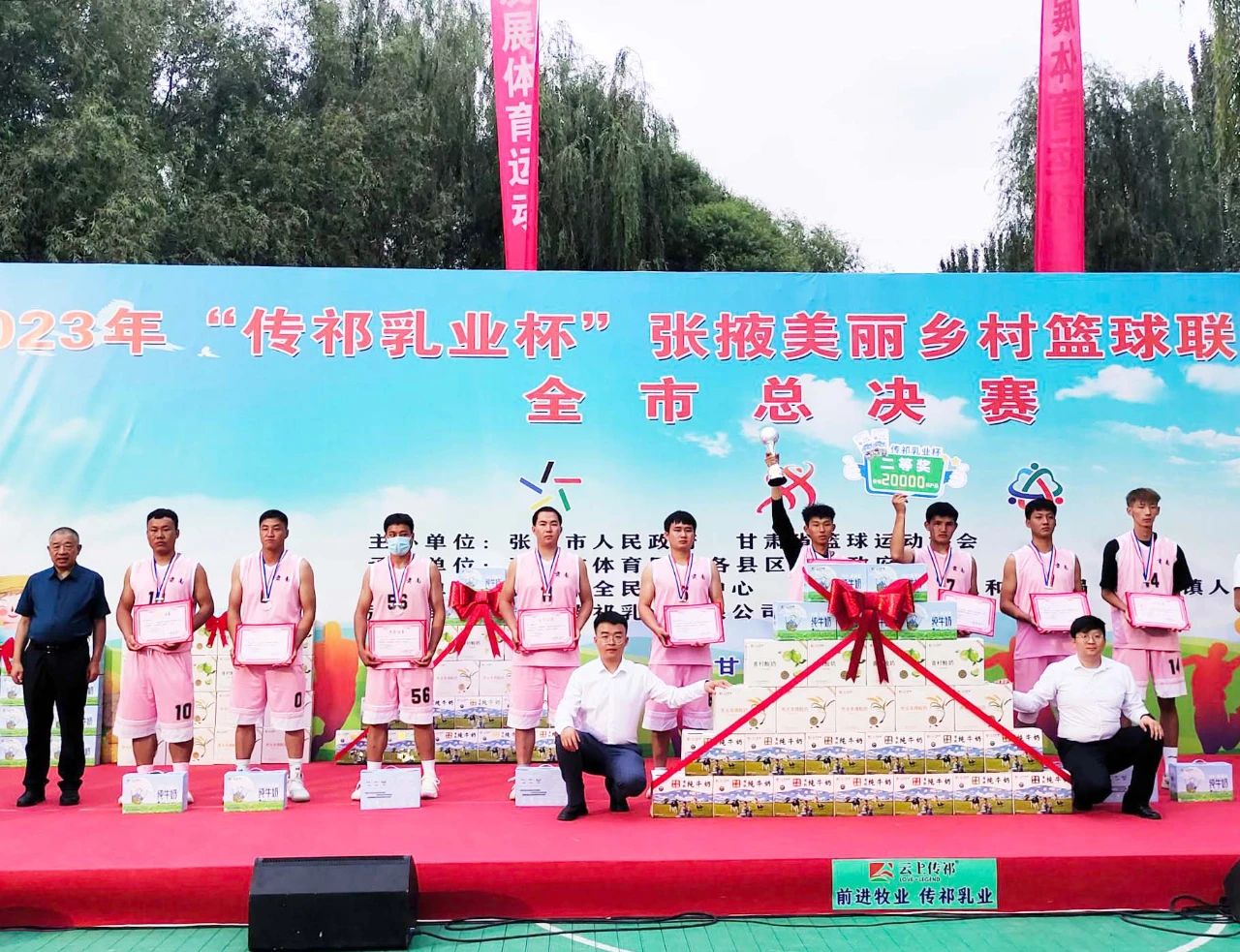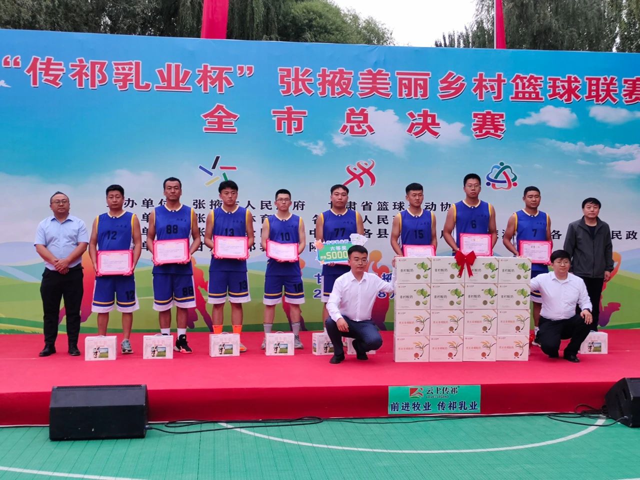 据悉,由甘肃传祁乳业有限公司冠名赞助的2023年“传祁乳业杯”甘肃省美丽乡村篮球邀请赛暨张掖乡村篮球联赛(村BA),自今年5月启动以来,全市500多个行政村积极组队参赛,历经1100场次激烈比拼,层层选拔出六县区的冠军队伍在甘州区润泉湖体育公园展开为期三天的激烈角逐。最终,甘州区代表队斩获头筹夺得第一名,肃南代表队和高台代表队分获第二、第三名。本次赛事中,各代表队和运动员团结合作、超越自我参赛事,不惧困难、迎风而上展风采,充分诠释了不言败、善拼搏、永向前的决心和毅力。这与前进集团以恒心、用恒力、筑恒业的企业精神高度契合,也与传祁乳业“以良心品质、用匠心工艺、做放心好奶”的工匠精神一脉相承;工作人员和裁判员兢兢业业、不辞辛苦保服务,敬职敬责、判罚分明显公平,充分彰显了在其岗、尽其能、履其责的担当和责任。这与前进集团谋发展、促振兴、同富裕的发展初心不谋而合,也与传祁乳业“产优质原奶、提国民素质、筑健康体魄”的企业情怀相得益彰。